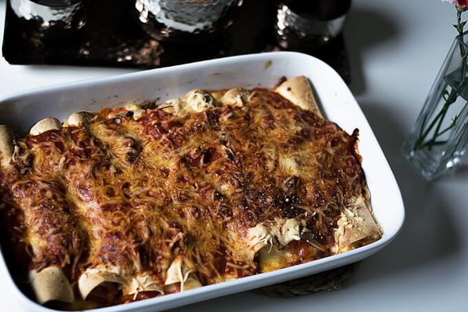 Diese Enchiladas mit Käse und Paprika Füllung sehen so gut aus, dass ich sie am liebsten sofort aufessen würde. Vielen Dank für dieses Essen an die Mexikanische Küche!